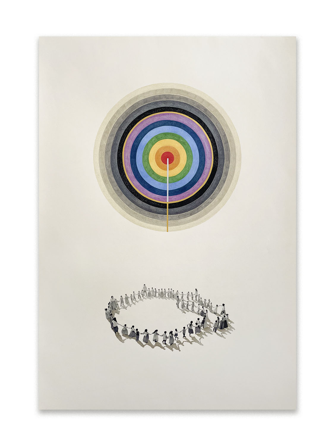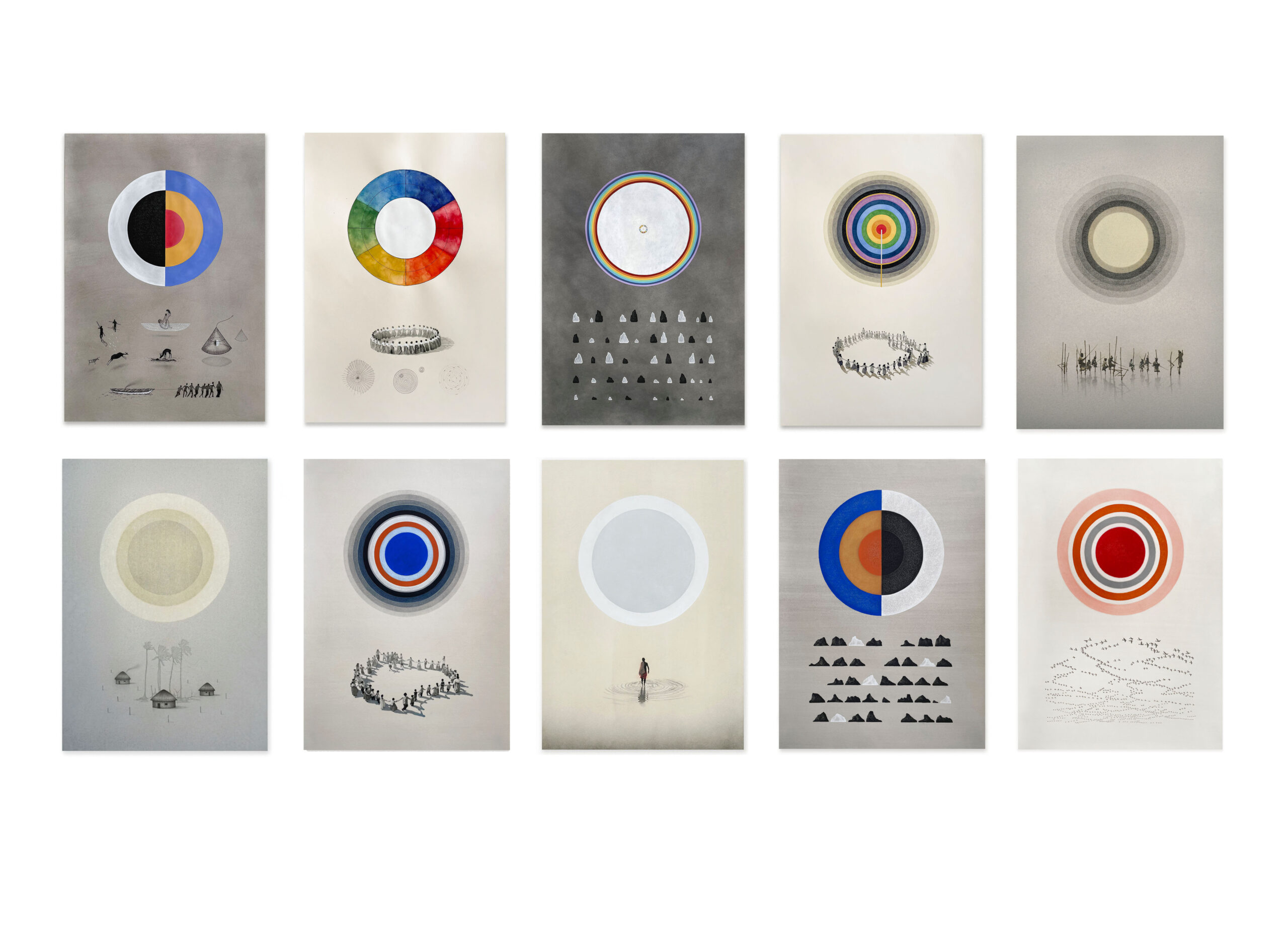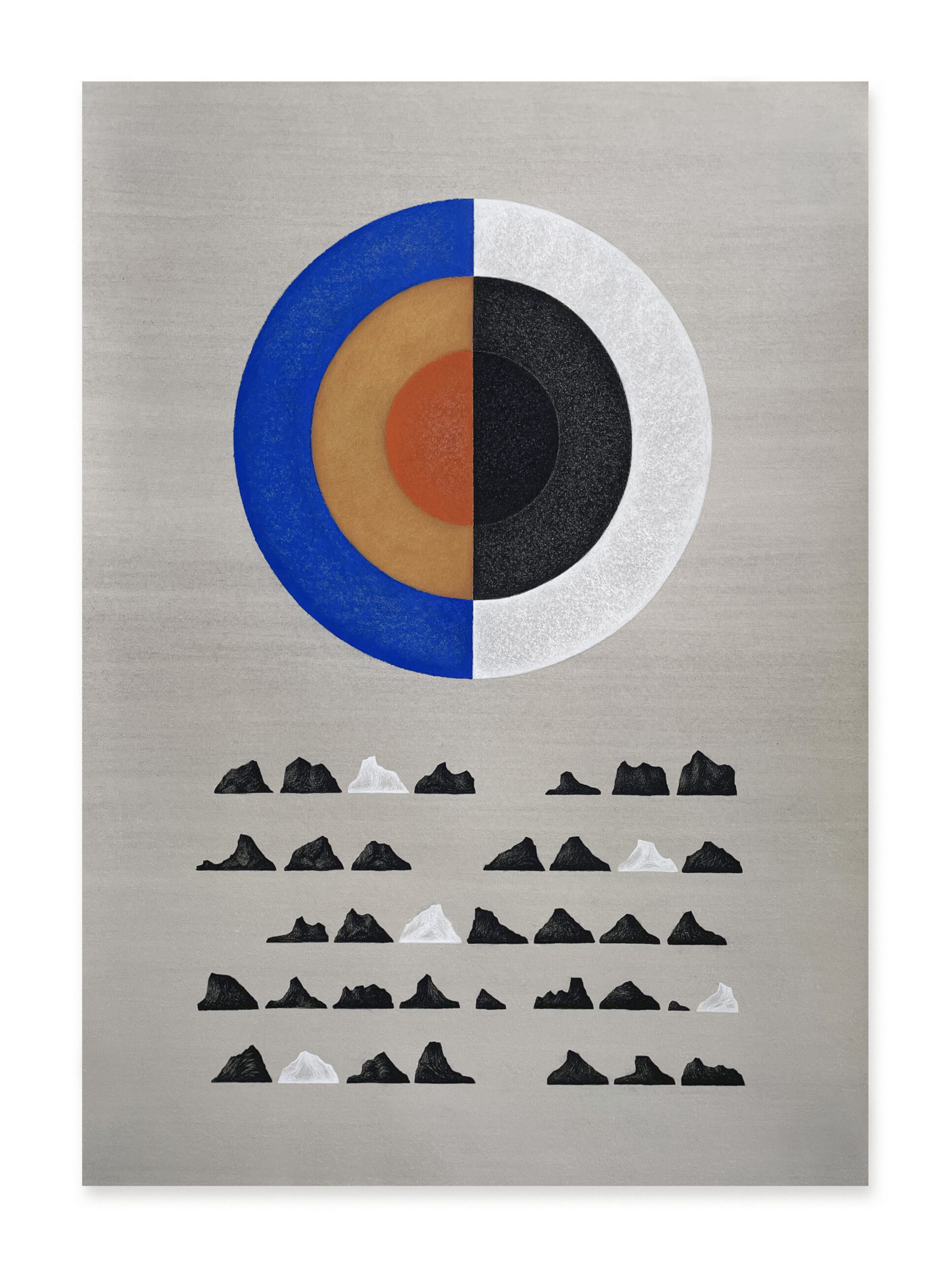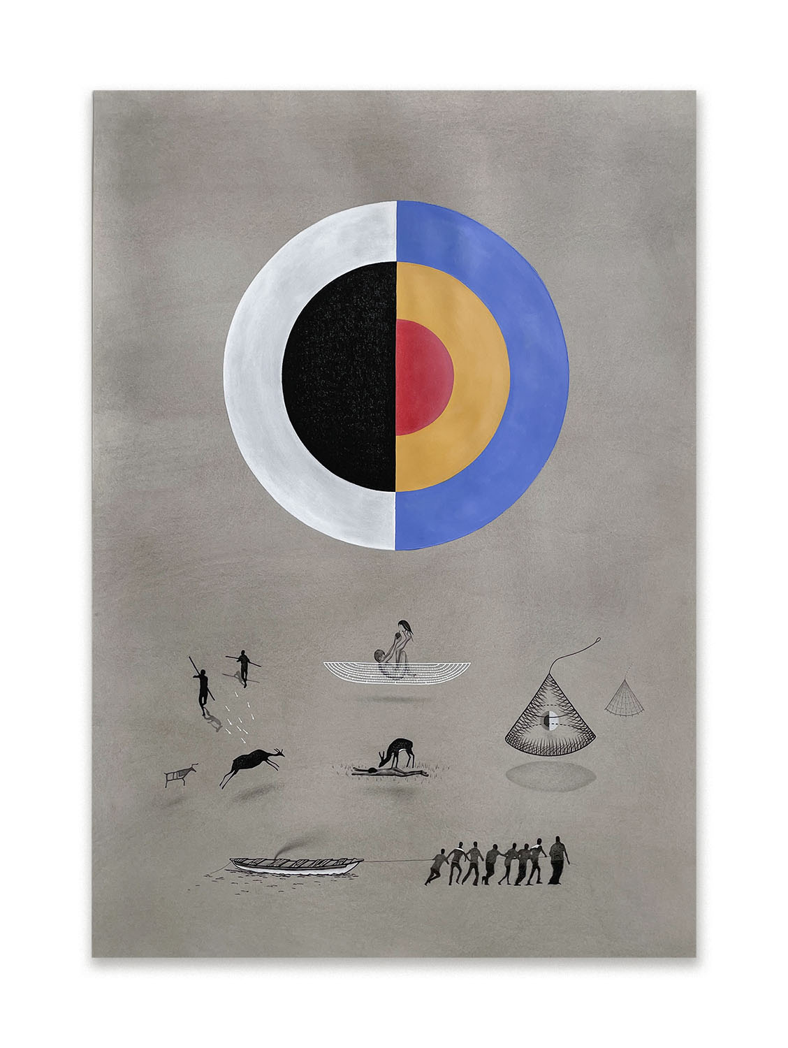 En esta muestra las imágenes arquetípicas son un recurso que está ligado a hábitos culturales, son modelos que ejemplifican ritos alojados en el inconsciente colectivo. El encuentro entre lo abstracto y lo figurativo en estas piezas habla de fuerzas que atraen o repelen, de tensión geométrica y jerarquías, pero también abre el espectro interpretativo a intercambios regidos por un orden superior, en una temporalidad indeterminada que nace de un pensamiento analógico, donde la memoria trae del pasado imágenes con la información para cuestionar, procesar y entender la huella humana en el presente.