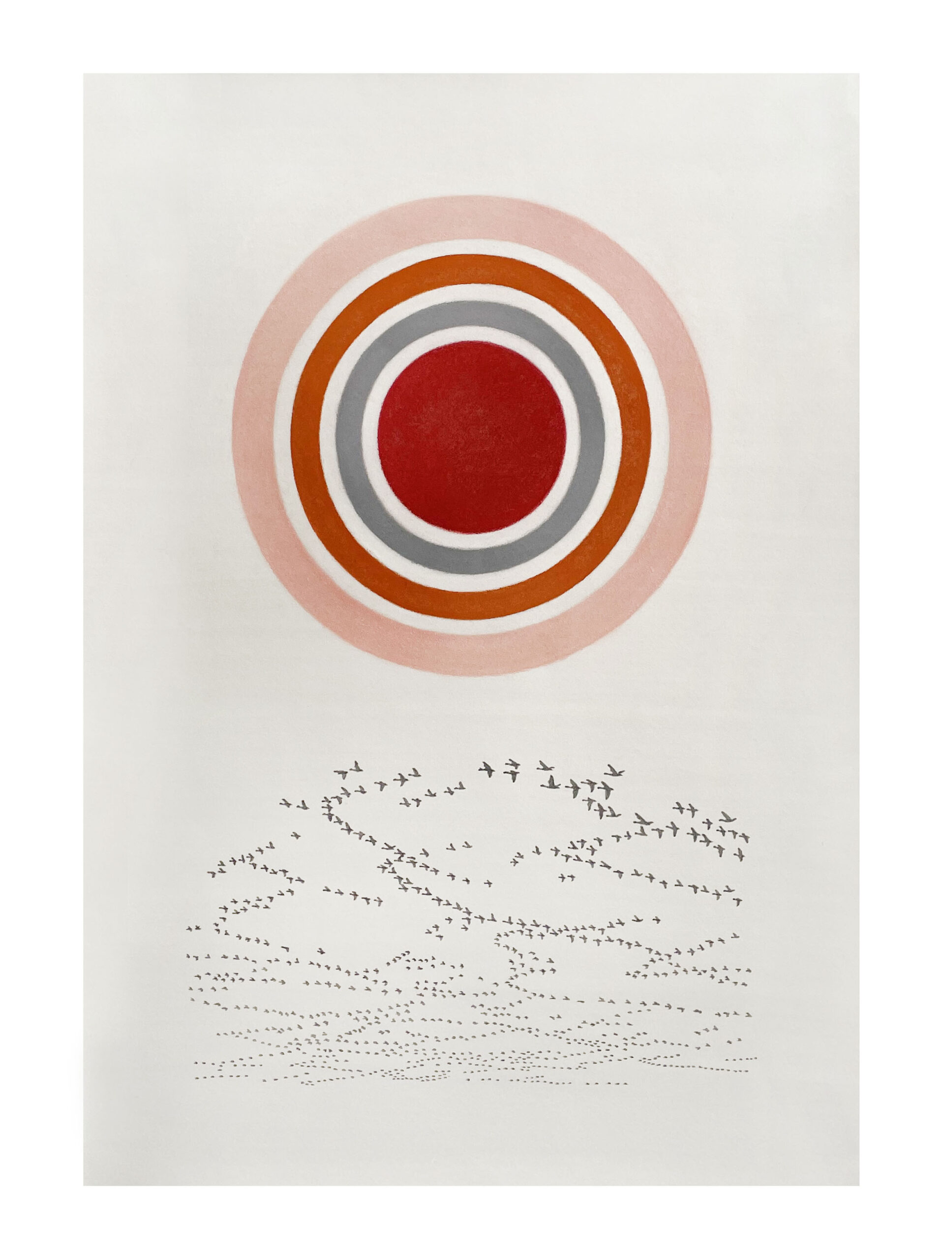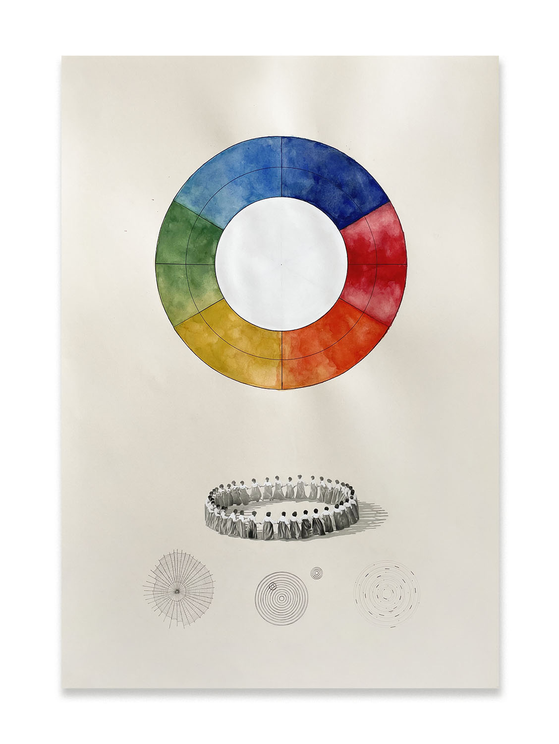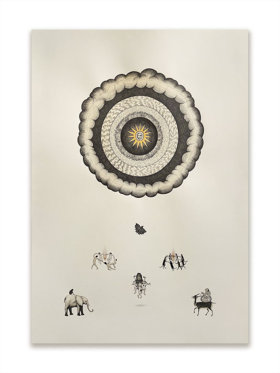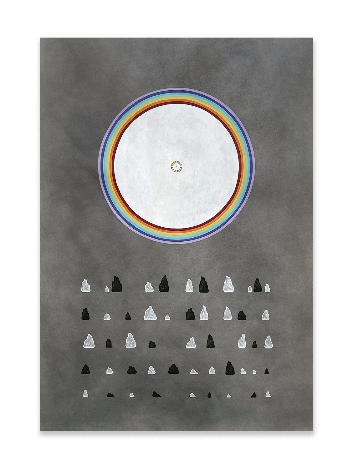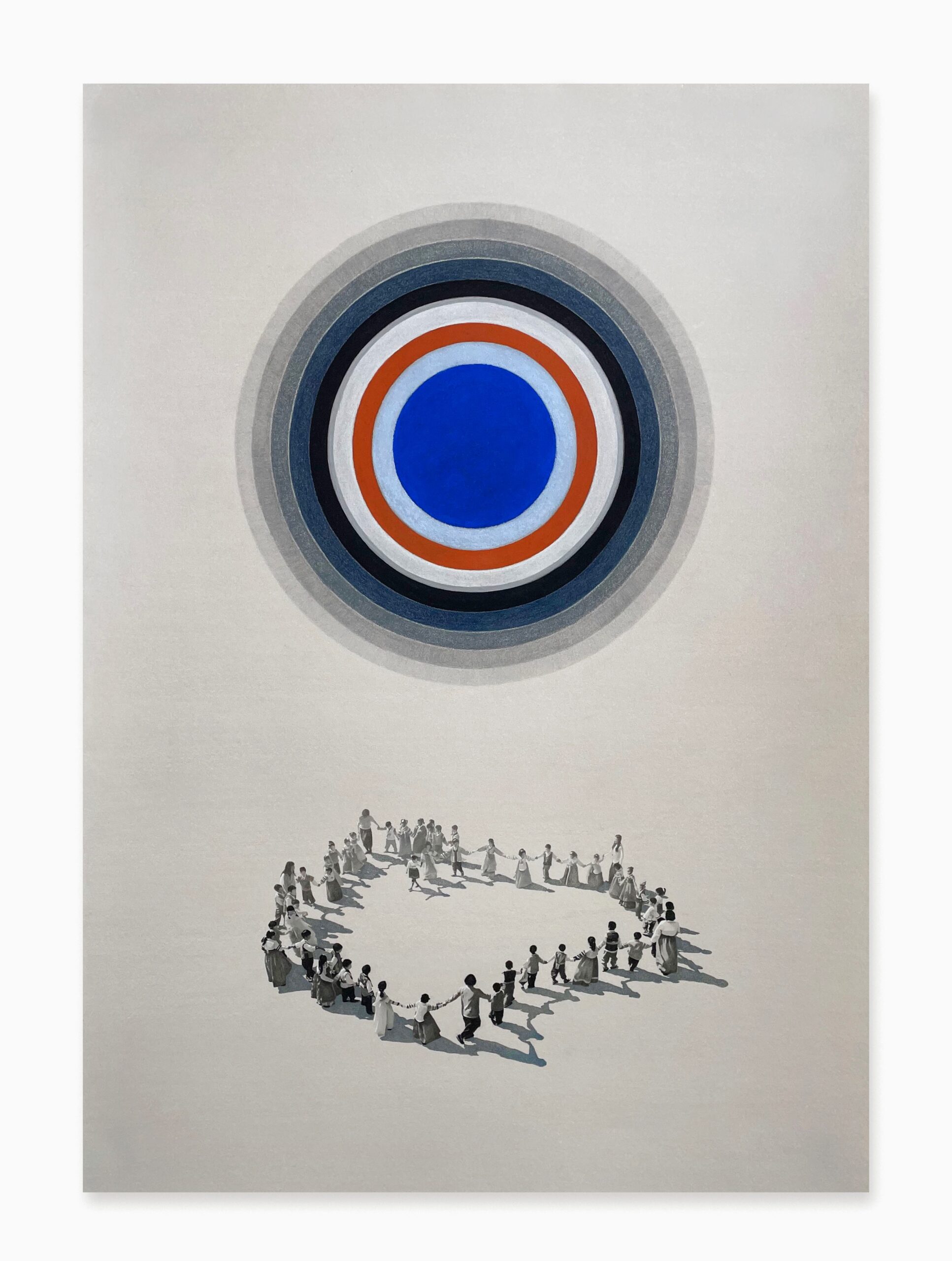 En esta muestra las imágenes arquetípicas son un recurso que está ligado a hábitos culturales, son modelos que ejemplifican ritos alojados en el inconsciente colectivo. El encuentro entre lo abstracto y lo figurativo en estas piezas habla de fuerzas que atraen o repelen, de tensión geométrica y jerarquías, pero también abre el espectro interpretativo a intercambios regidos por un orden superior, en una temporalidad indeterminada que nace de un pensamiento analógico, donde la memoria trae del pasado imágenes con la información para cuestionar, procesar y entender la huella humana en el presente.