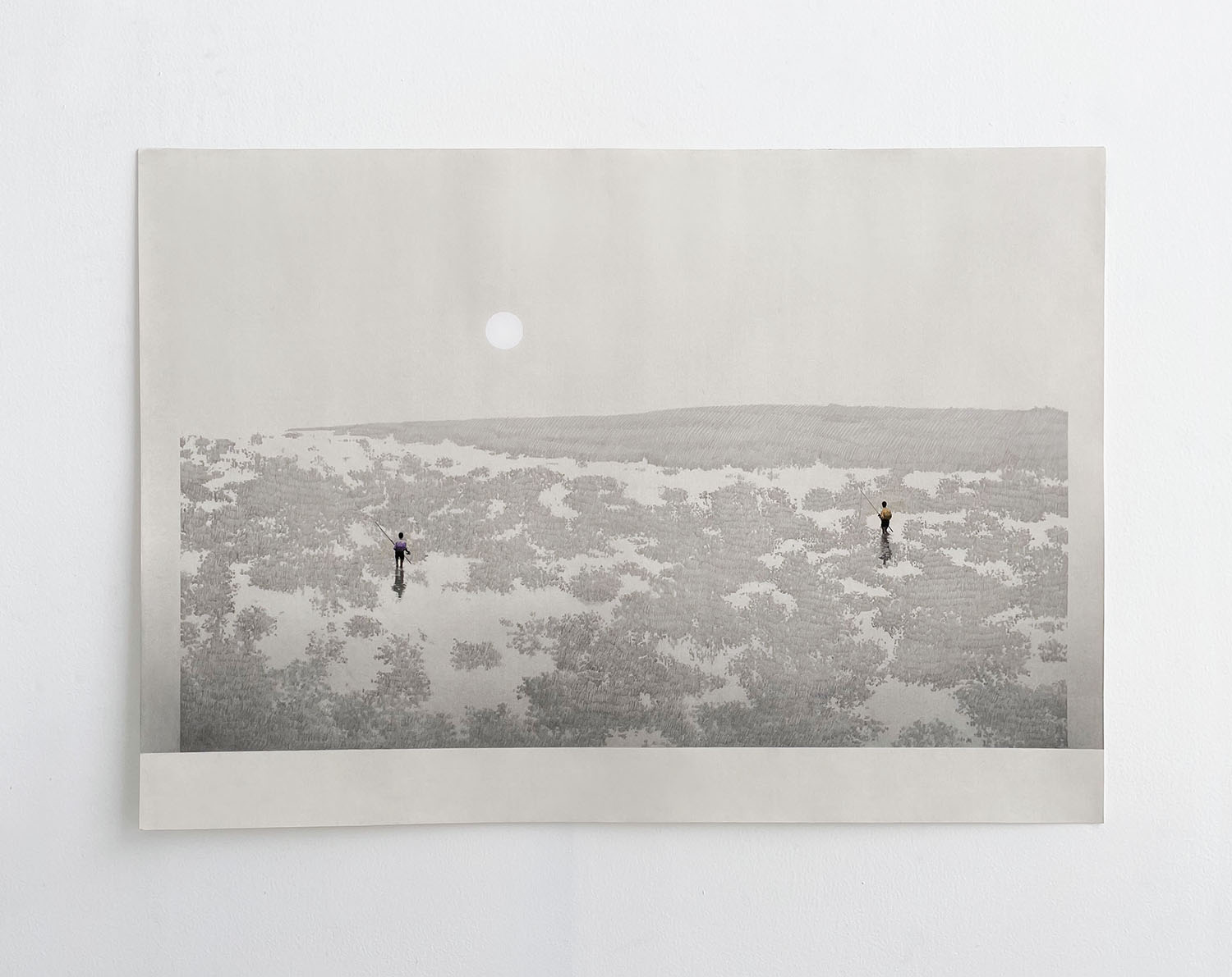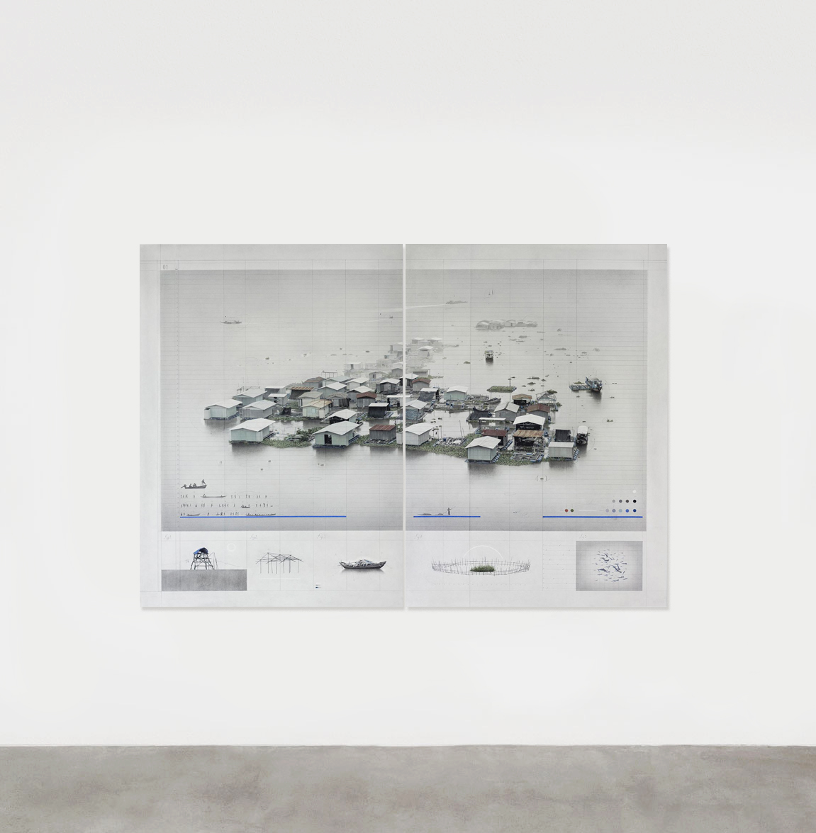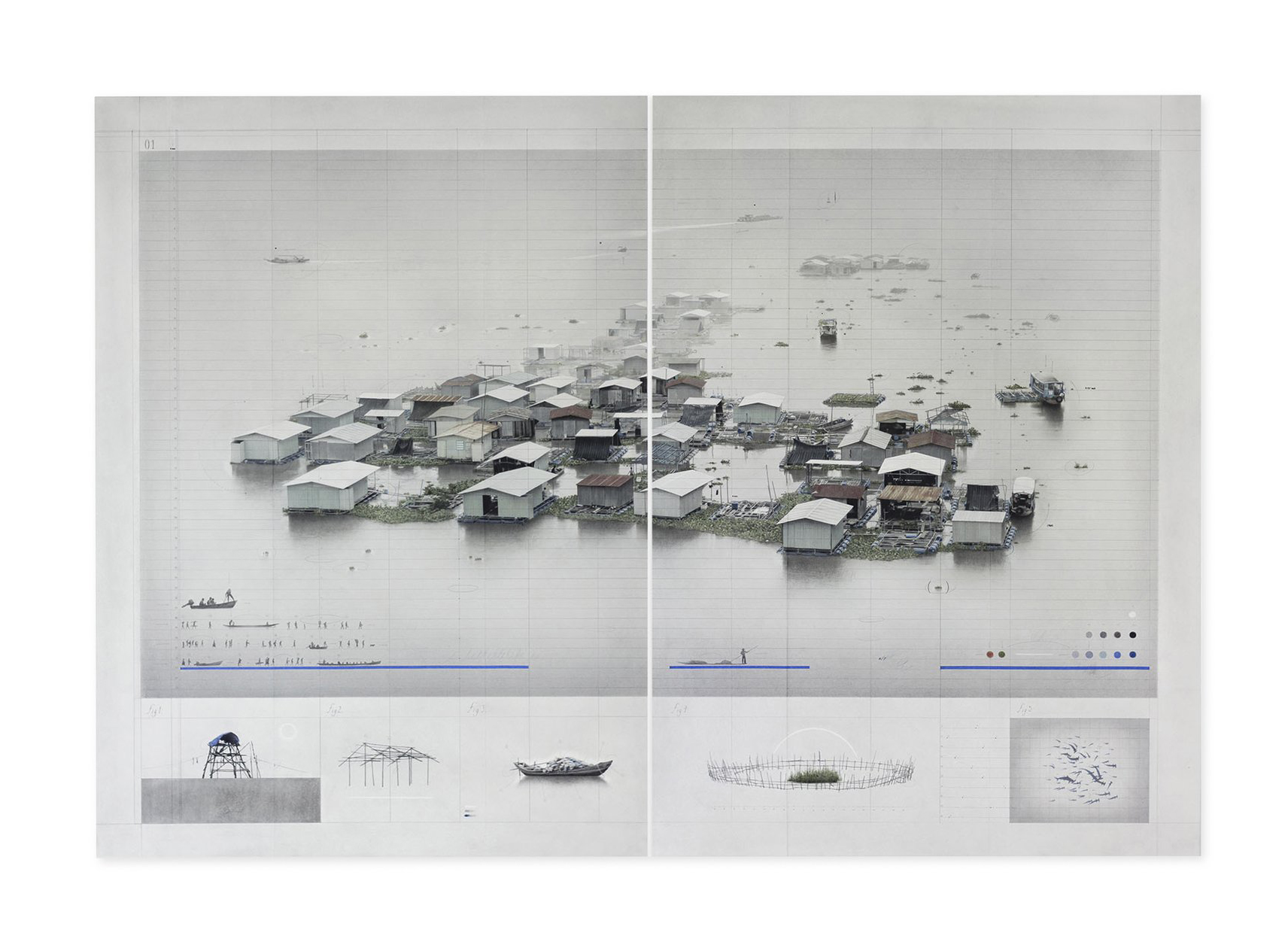 “Inflexión Palafítica”, vincula al individuo con su entorno. Es grafito sobre papel y algunas intervenciones de acuarela, las que construyen la morfología de un proyecto en el que el palafito constituye la anatomía de su forma. En su confección se describe cómo la construcción de la persona, interviene en la cimentación de la urbe que habita. Ahí, la presencia patente de los vicios de la sociedad delatan un panorama de profunda división que deja al descubierto el tabú hostigante y avasallador de la ceguera medial y popular. El proyecto de Felipe Bedoya exhibe lo desconocido, lo que no se ve a simple vista. Los matices y virtudes de una