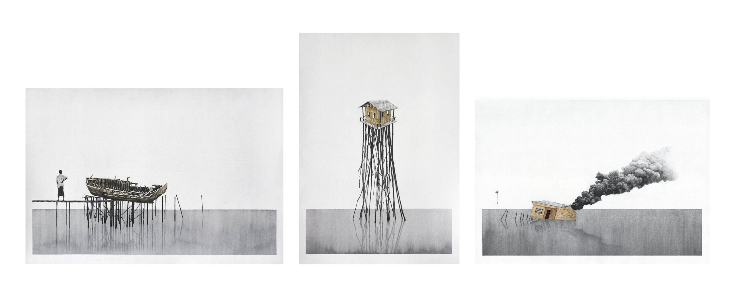 De cara a su soledad enfrentan una realidad que las sostiene al borde de caer, en el limbo de la existencia, corriendo riesgo de muerte ante la más ínfima alteración. El hombre, la marea o el fuego serían suficientes para volverlas humo. Sufren porque la ambición y el antagonismo les arranca sus habitantes con la regularidad suficiente como para despojarles de un mísero atisbo sensitivo de hogar.